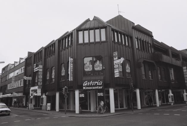 N5395 1979 wurde das Großkino geschlossen und abgerissen. Es brauchte 3 Jahre, um einen Neubau zu erstellen, der dann auch wieder ein Kino beinhaltete Im Rahmen eines Geschäftshaus-Neubaus entstanden 5 Spielstätten - für den Göttinger Filmtheaterbesitzer Kurt Krause und seine gleichnamige Filmtheater-GmbH das 21. bis 25. Haus. Architekt Horst Adamek aus Senden bei Münster teilte den zur Verfügung stehenden Raum im Obergeschoß des mit Bronzeplatten verkleideten Gebäudes, zu dem eine breite Treppe führte, geschickt auf. Der geräumige Vorraum mit Kasse und Verkaufstresen befand sich auf der gleichen Ebene mit den Spielstätten. Vorraum und Theater wurden von Kurt Krause und seiner Mannschaft in Teamarbeit mit der hannoverschen Kinoausstattungs- und Dekorationswerkstatt Alfred Försterling gestaltet. . Der Grundton in Kino A mit 157 Plätzen war violett, braun waren Teppichboden und Decke. Als Beleuchtungskörper dienten Seitenspots. Hier waren Familienfilme vorgesehen, die bei starkem Andrang mit derselben Kopie gleichzeitig auch in Kino B (114 Plätze) vorgeführt werden können. In diesem Raum herrschte Grün vor, ergänzt durch braunen Teppichboden und Decke. Rot dominiert in Kino C mit 80 Plätzen. Hier war Rauchen und Verzehr möglich. Kino D war als Studio gedacht. Fotomontagen von Stars der Stummfilmzeit und des klassischen Tonfilms lockerten die schwarzgehaltenen Wände auf. Decke und Teppichboden hatten braune Tönung, an den Seiten befanden sich die Spots. Kino E war mit 44 Kunstledersesseln für „harte Kost“ - sprich Pornos - bestimmt. Kupferschwarze Töne kontrastierten mit hellem PVC-Boden und hellbeigefarbenen Seitenspots. Die Gesamttechnikwurde von einem gemeinsamen Vorführraum gesteuert und lief in alle Häusern über Spiegel. Für jedes Theater stand je ein Philips-FP-VI-Projektor mit Philips-Filmteller zur Verfügung. Die Häuser A und B waren für Synchronbetrieb ausgelegt. E8223 Wenige Monate vor der Schließung übernahmen die Riech-Betriebe das Haus, vermutlich um ihre Vormachtstellung in Osnabrück zu untermauern. Als dies geschafft war, schloss man das in die Jahre gekommene Kinocenter. Einen Artikel mit Foto können Sie hier lesen. |