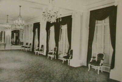 Das zarte Grün und Gold der Wände kontrastierte dort mit dem leuchteten Rot der Polstersessel und der Damastvorhänge im Zuschauerraum. Im Foyer wiederum war es der bunte Marmor, der den Untergrund für das Rot der breiten Treppenläufer und Teppiche gab. Die Beleuchtung war größtenteils indirekt. Das Oval des Zuschauerraums kannte keine toten Winkel. L24140