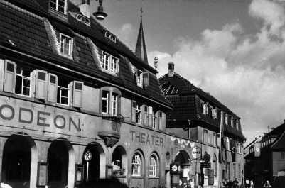 Am 22. März 1923 wurde das nunmehr amphitheatrisch angelegte und vergrösserte "Odeon" erneut wiedereröffnet und spielte auch nach der schweren Beschädigung durch Bomben am 21. Juni 1940 noch - behelfsmaßig instandgesetzt - während des Krieges weiter. Der Kinosaal wurde danach nicht wieder aufgebaut und durch die "Scala" ersetzt.