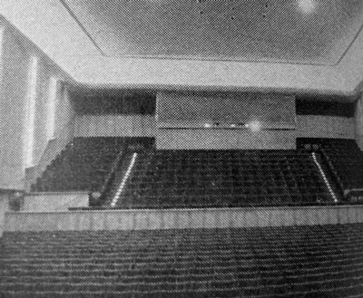 Velvetvorhang. Der Sitzreihenabstand betrug 1 m. Die Bildwand war 12 m breit.