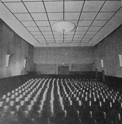 der Einweihung betont, den guten Film pflegen und Bildungsstätte sein. N5284 W5252 Das 420-Plätze-Theater wurde 1958 renoviert. Die Bühne wurde durch einen gelben Vorhang vom Zuschauerraum getrennt. Technisch war das Theater mit Bauer B8-A-Projektoren, einer Sonora Extra-Leinwand und einer Klangfilm-Lautsprecheranlage ausgestattet. N5837 Herr Arnold leitete das Filmtheater bis zur Schließung 1982. |